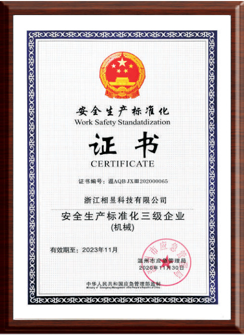 安全生產(chǎn)標準化證書(shū)