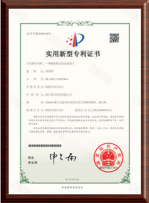 新型專(zhuān)利證書(shū)